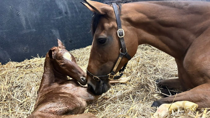Since her retirement from racing in early 2023 following a breathing issue, she has since travelled to France as part of her new career as a broodmare where she was covered by top French stallion, Doctor Dino. We were delighted to recently announce that at the beginning of May, Annie Mc successfully gave birth to a healthy chestnut colt foal.